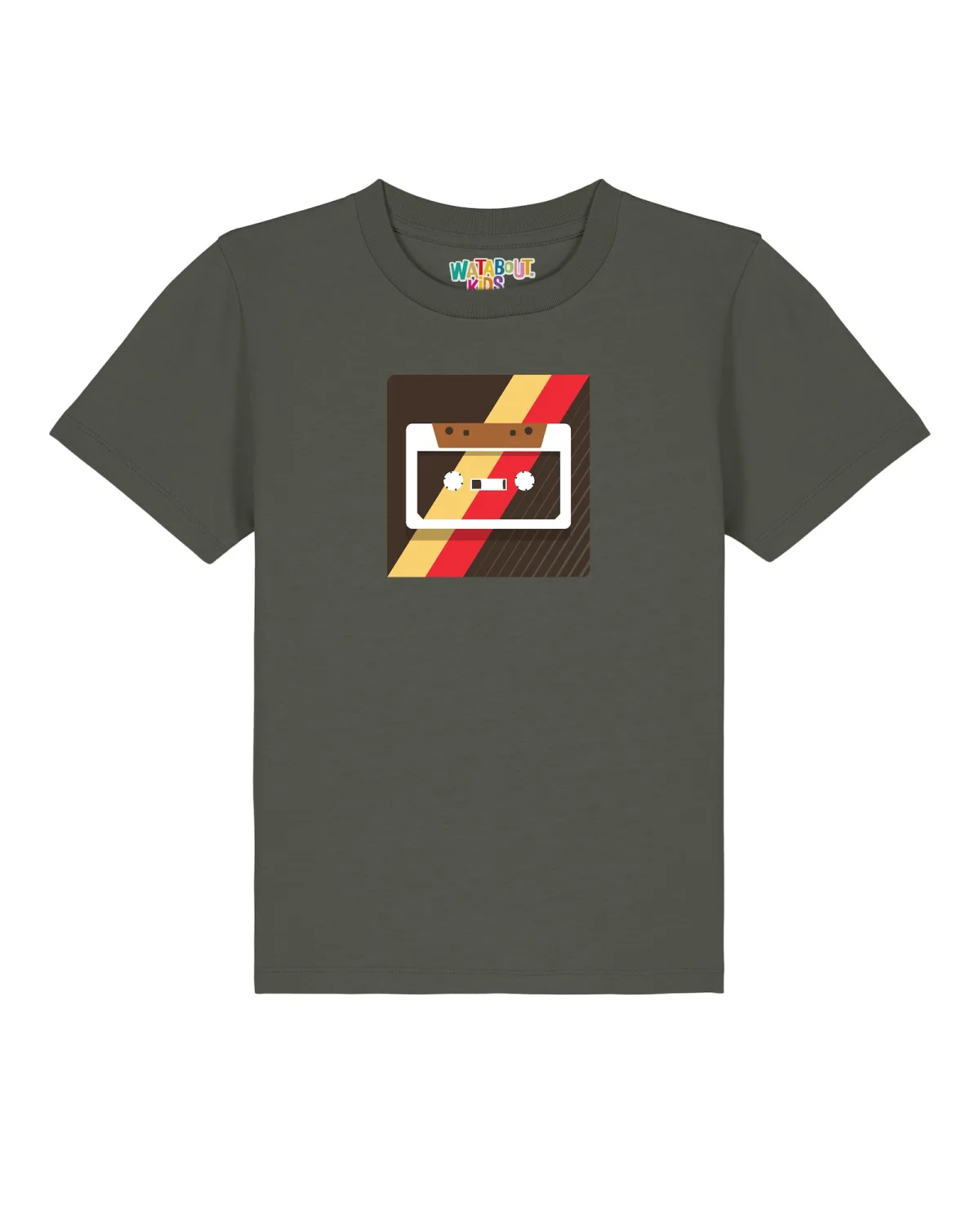 Specificaties: watabout.kids Shirt ‘Kassette’ donkerbruin / kaki / rood / wit