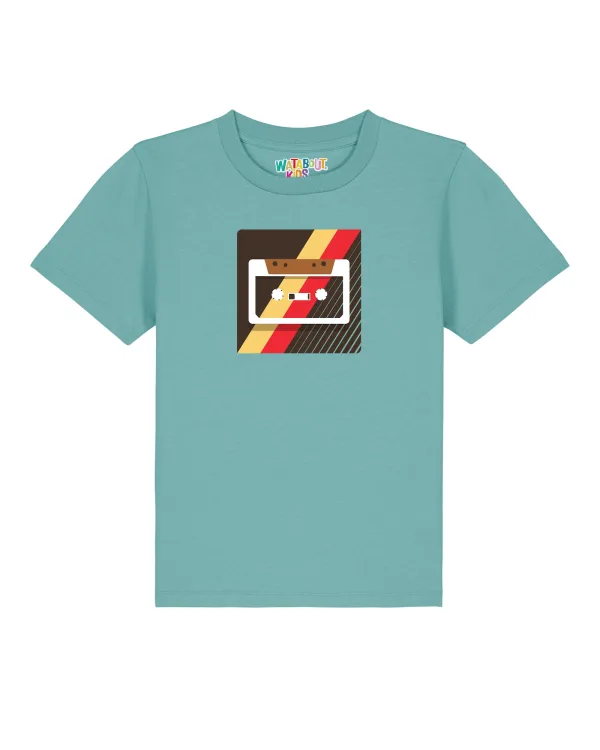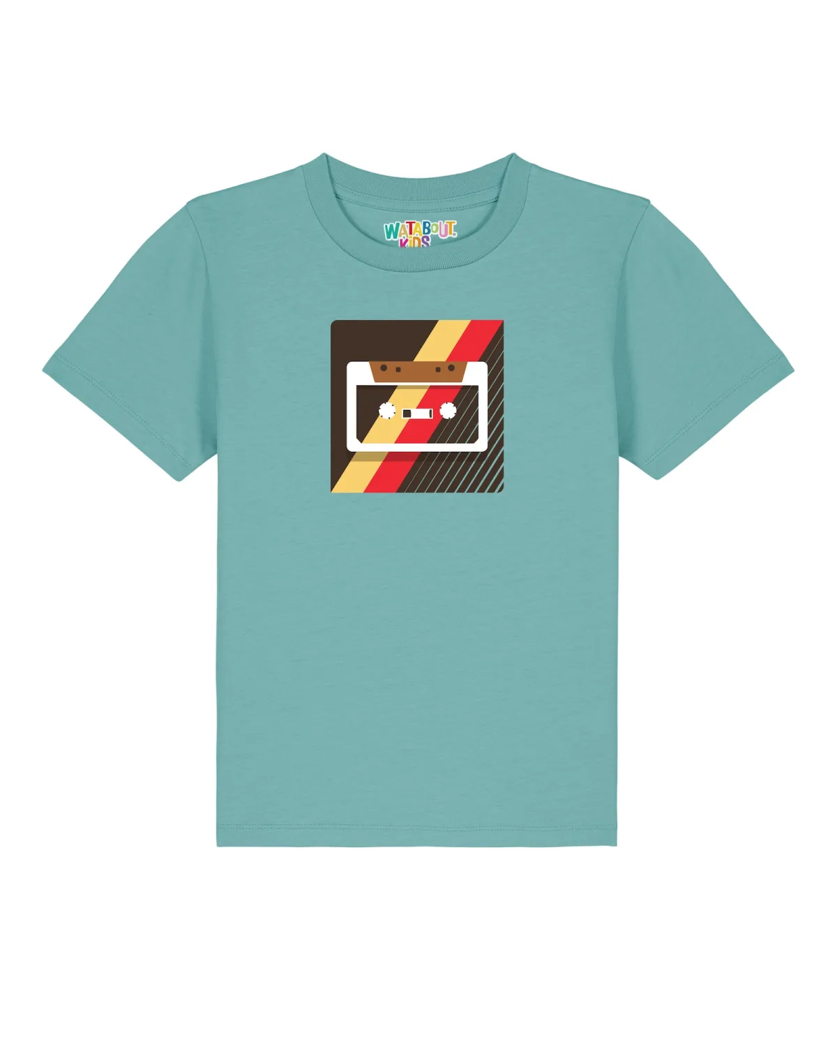 watabout.kids Shirt ‘Kassette’ turquoise / donkerbruin / rood / wit
