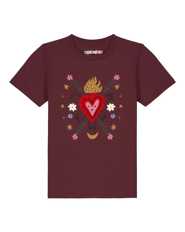 watabout.kids Shirt ‘Love and flex’ camel / rood / bordeaux / wit