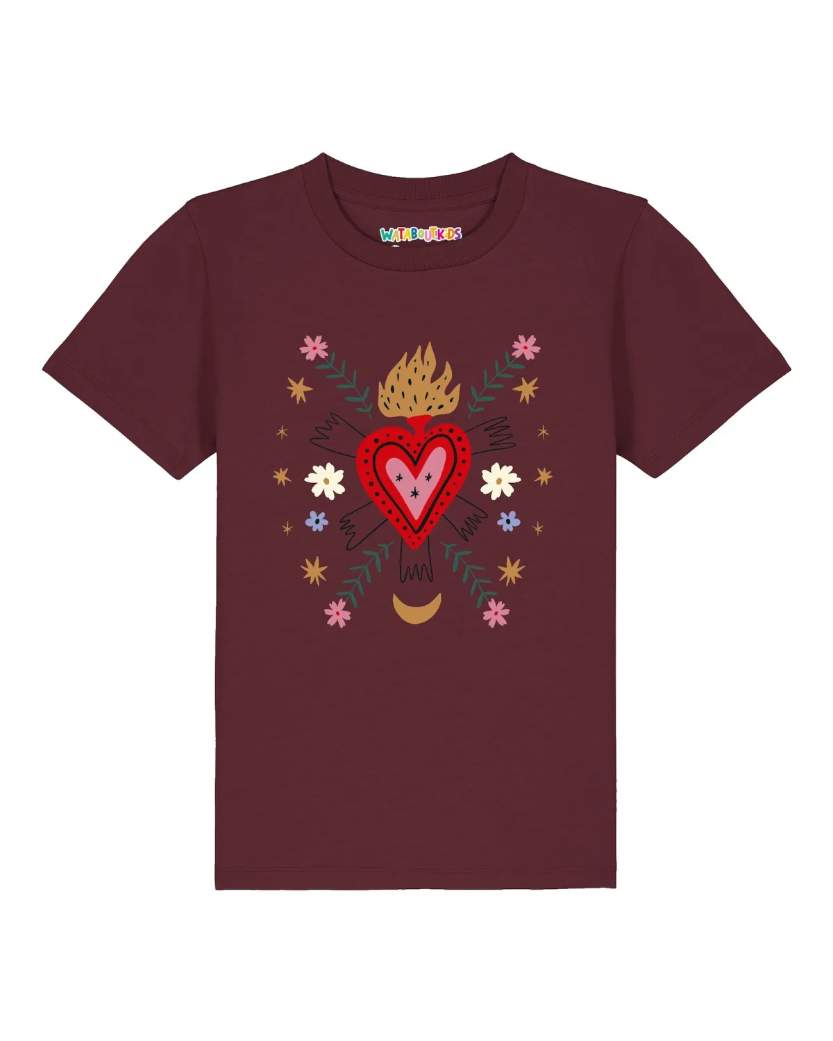 Specificaties: watabout.kids Shirt ‘Love and flex’ camel / rood / bordeaux / wit