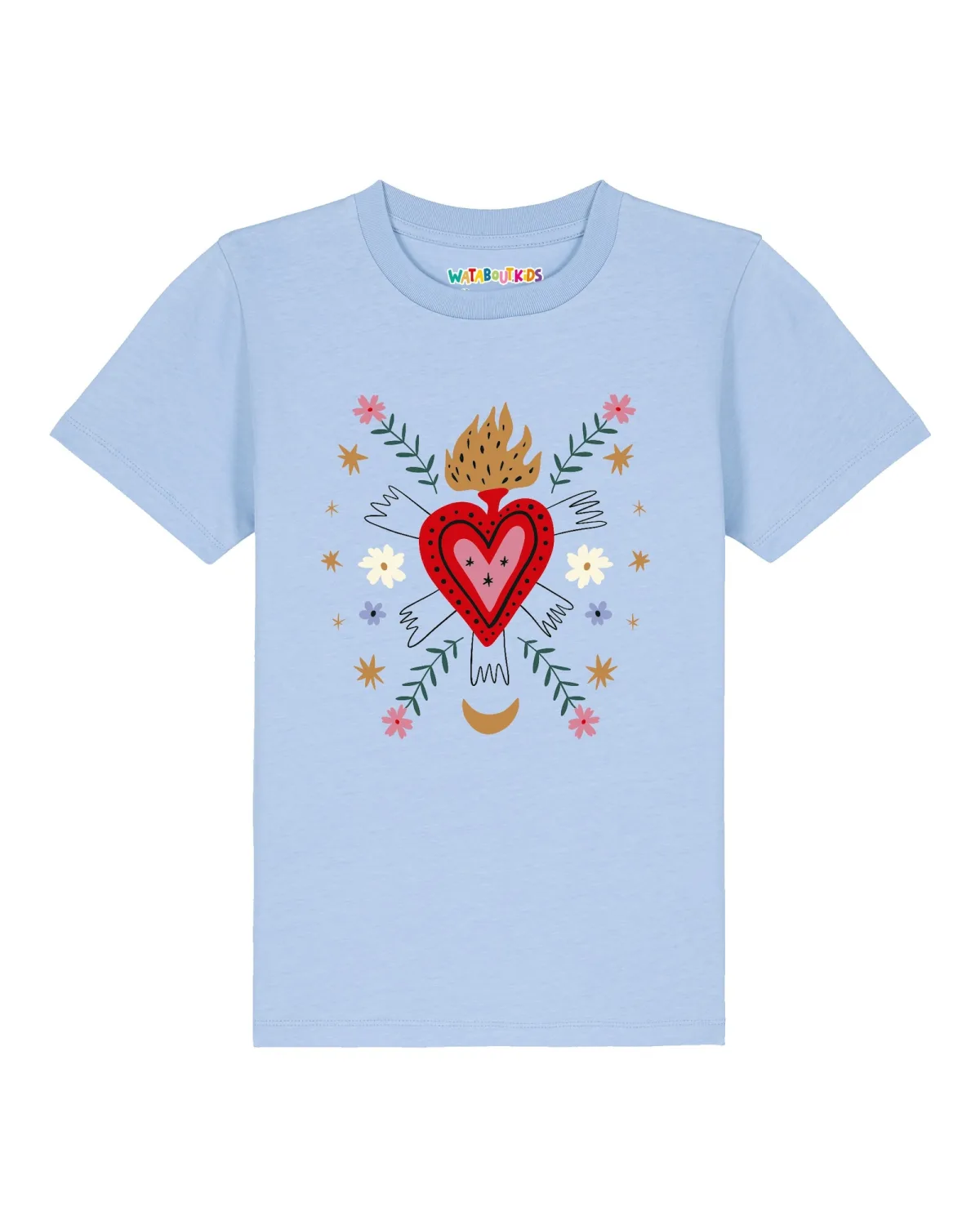 watabout.kids Shirt ‘Love and flex’ lichtblauw / lichtroze / rood