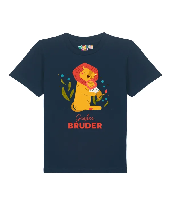watabout.kids Shirt ‘Löwen Großer Bruder’ navy / curry / rood / wit