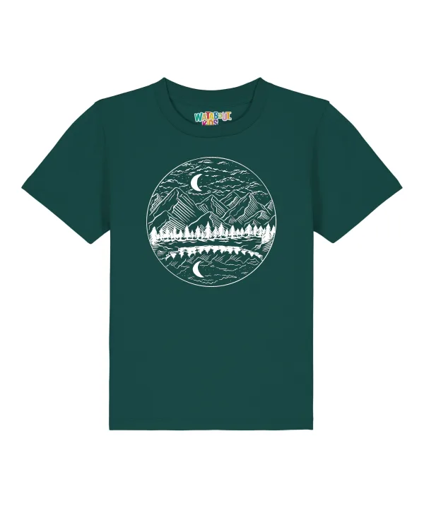 Specificaties: watabout.kids Shirt ‘Mountains By Night’ donkergroen / wit