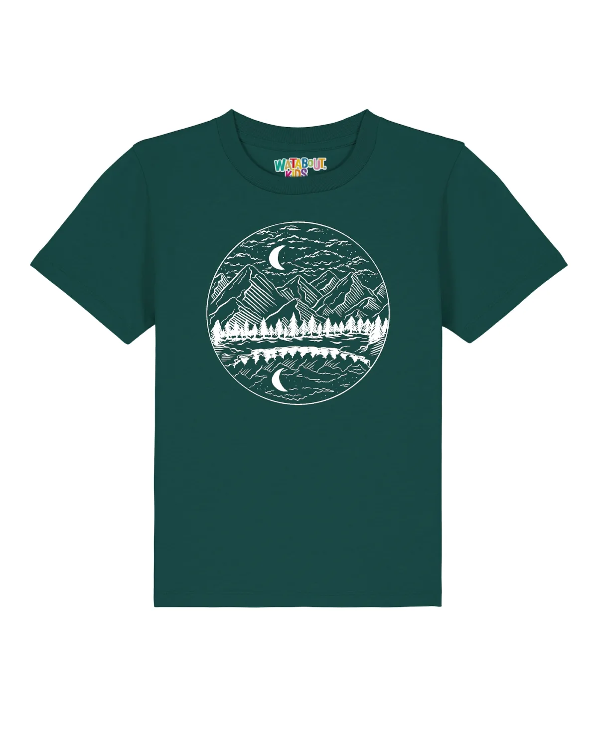 watabout.kids Shirt ‘Mountains By Night’ donkergroen / wit