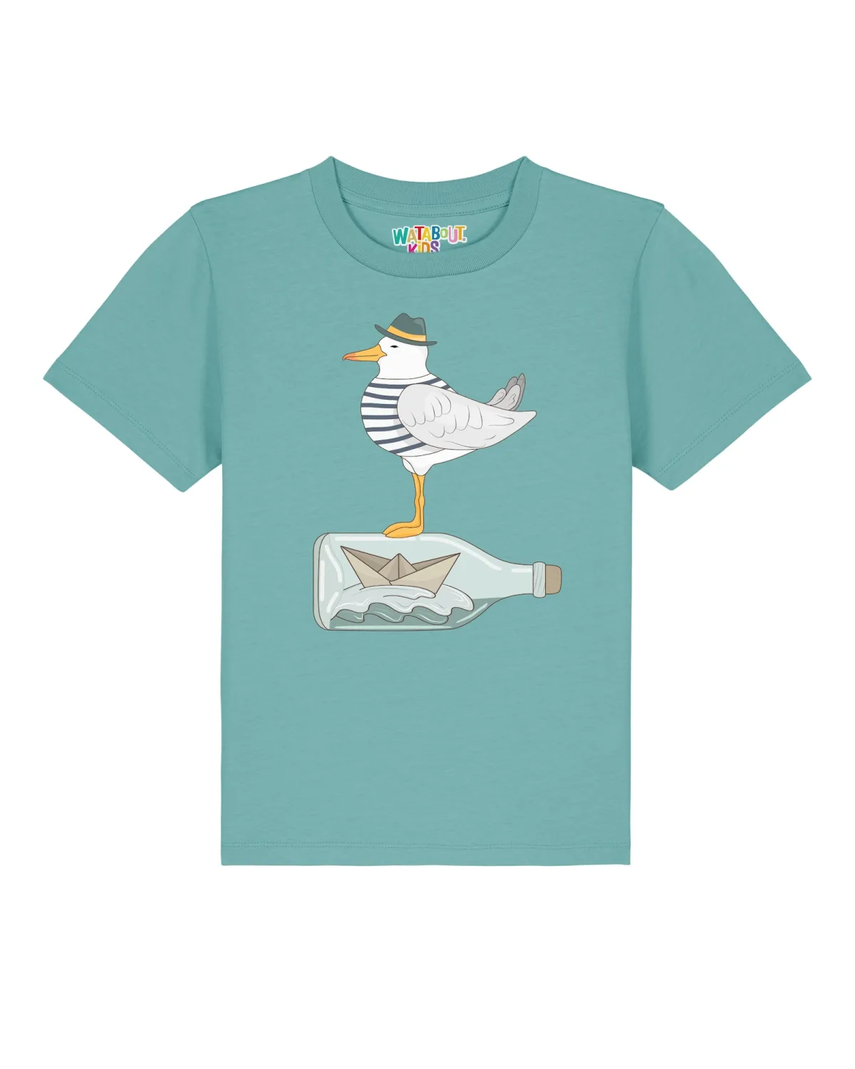 watabout.kids Shirt ‘Möwe mit Hut’ turquoise / donkerblauw / grijs / wit