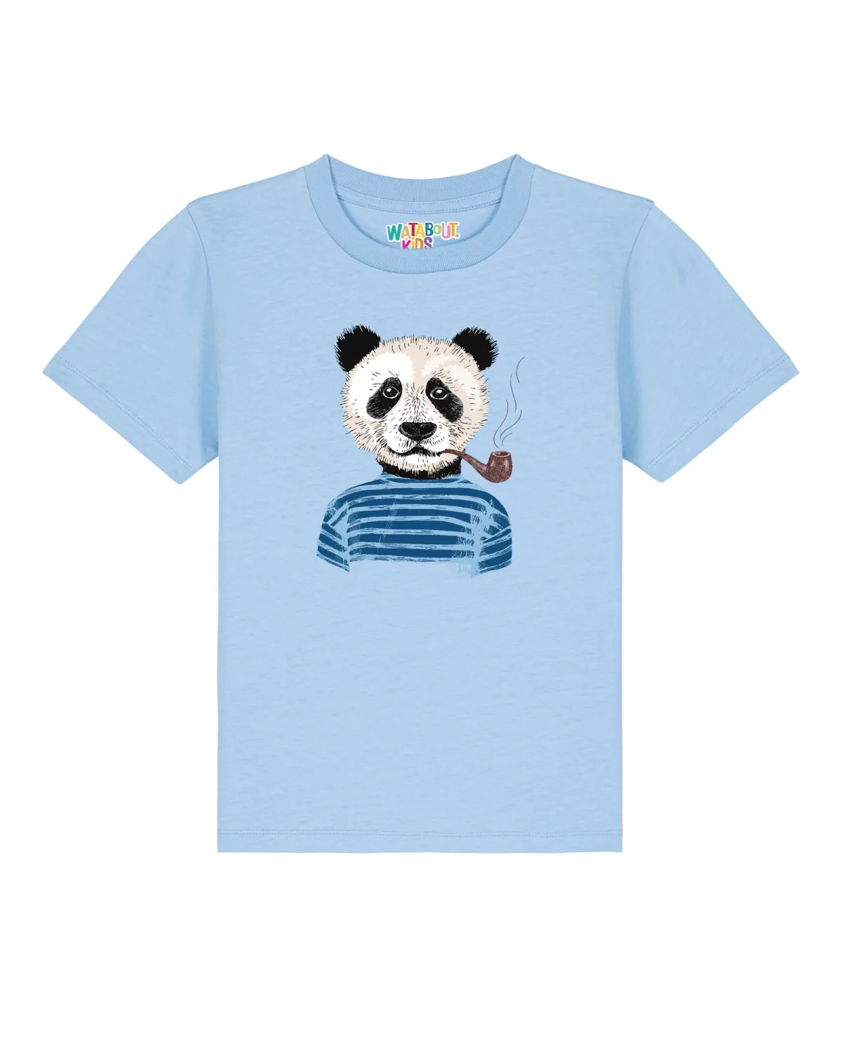Specificaties: watabout.kids Shirt ‘Panda’ lichtblauw / donkerblauw / zwart / wit