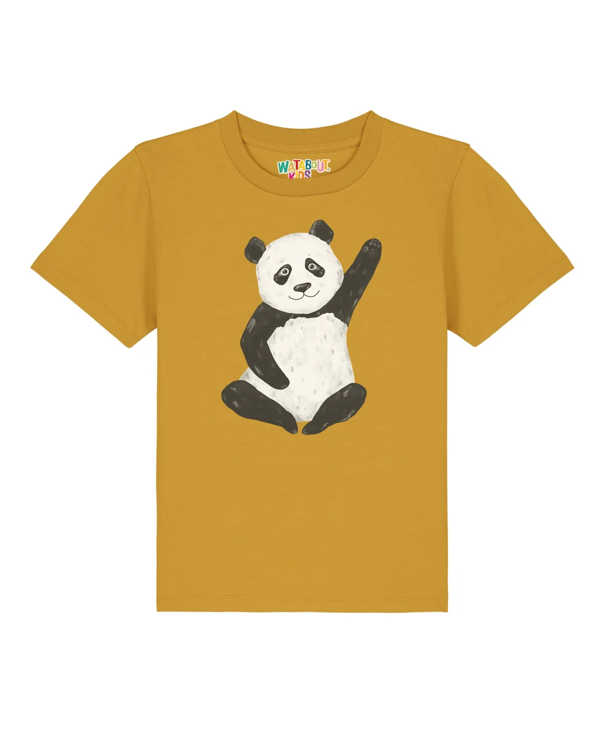 Specificaties: watabout.kids Shirt ‘Panda’ mosterd / zwart / offwhite