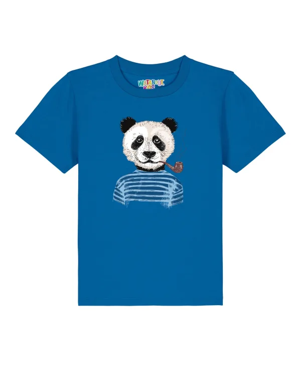watabout.kids Shirt ‘Panda’ royal blue/koningsblauw