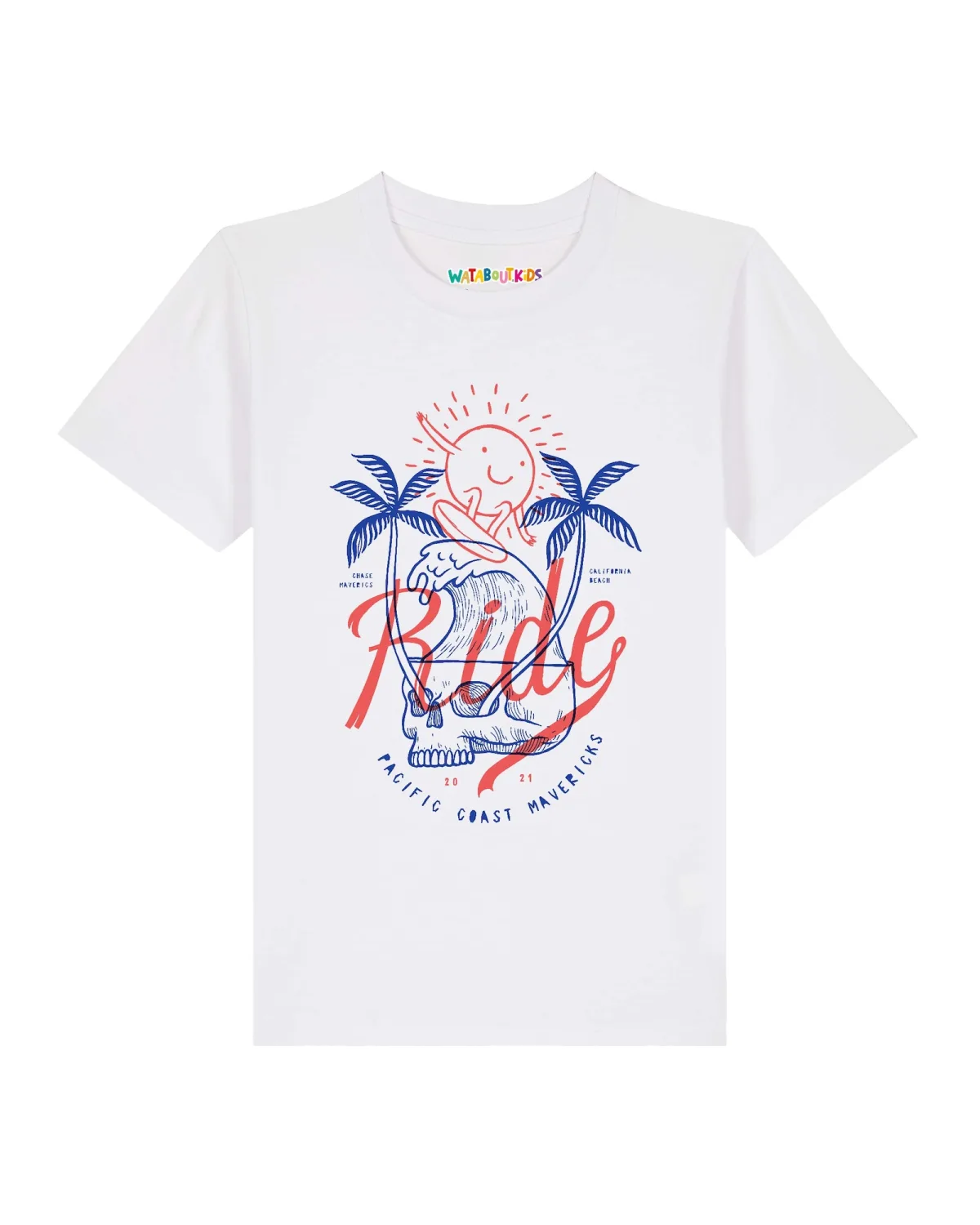 Specificaties: watabout.kids Shirt ‘Ride the waves’ blauw / rood / wit