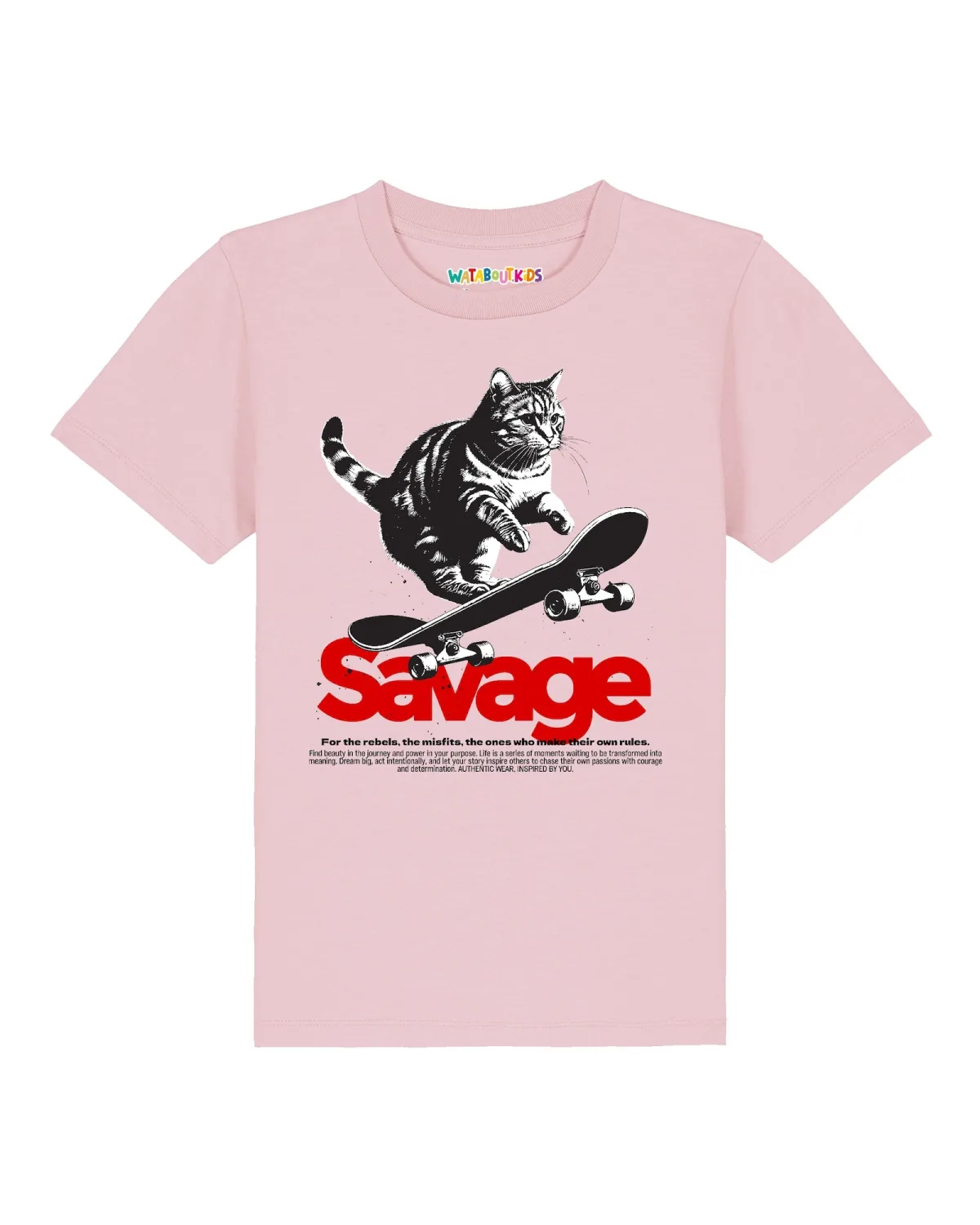 watabout.kids Shirt ‘Savage Cat’ rosa / rood / zwart / wit