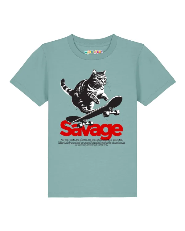 Specificaties: watabout.kids Shirt ‘Savage Cat’ turquoise / rood / zwart / wit