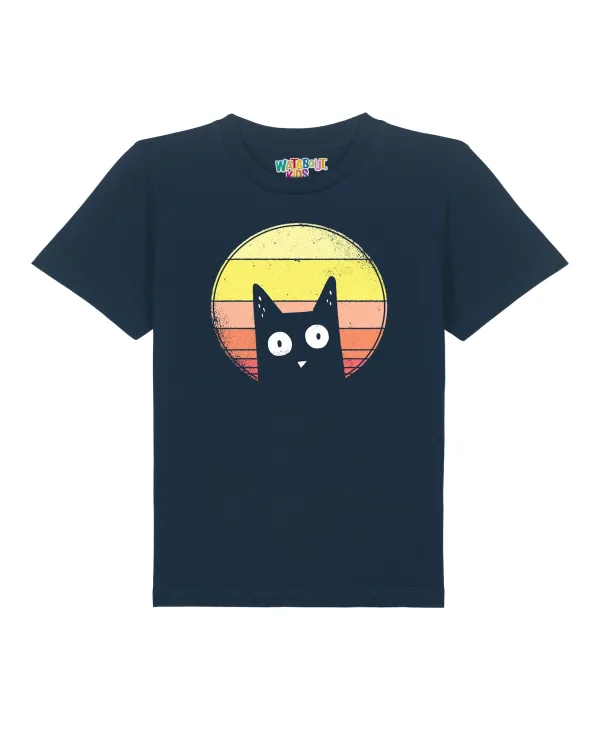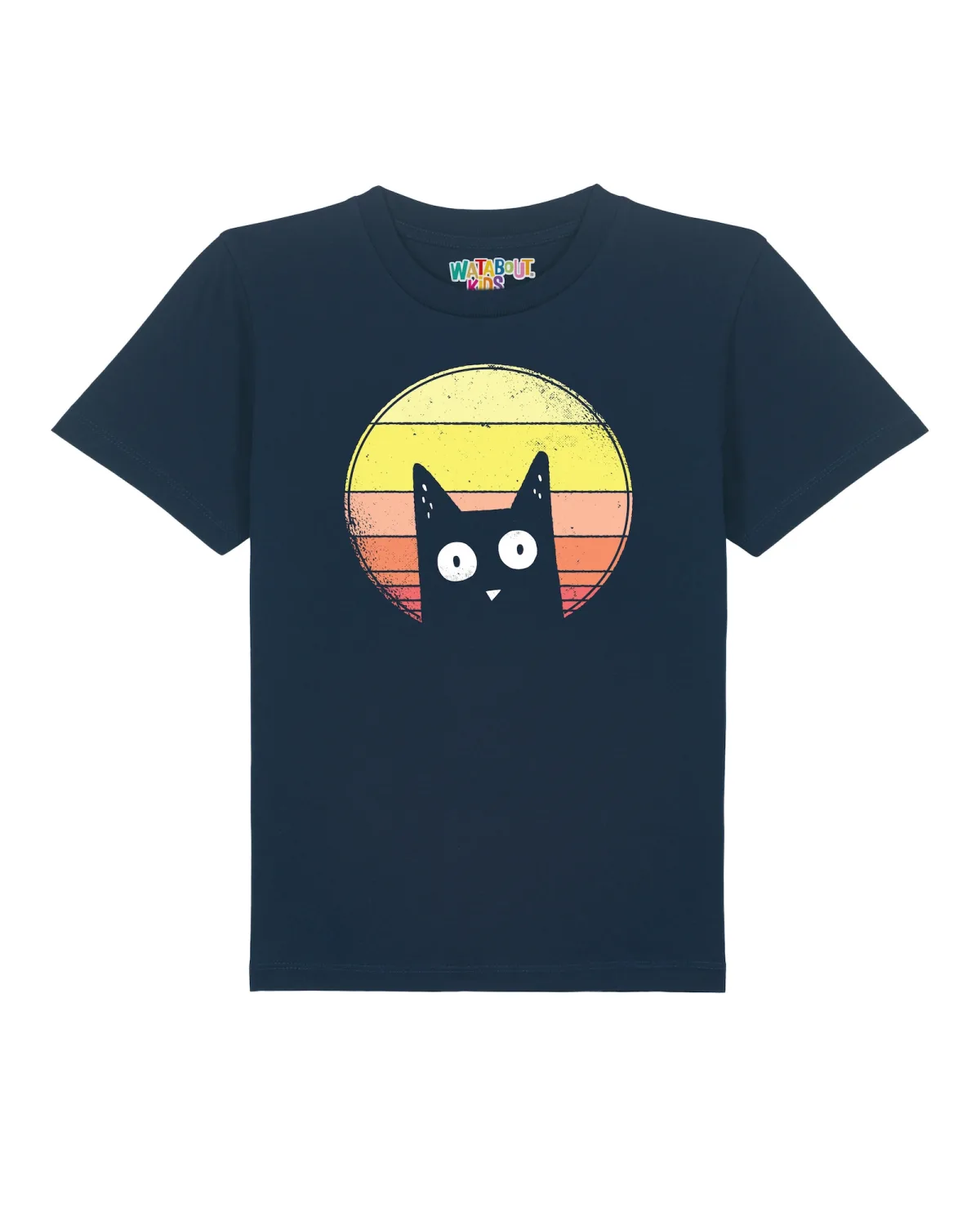 watabout.kids Shirt ‘Sunset Cat’ navy / geel / oranje / wit