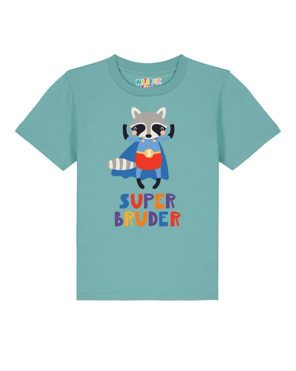 Specificaties: watabout.kids Shirt ‘Superbruder’ blauw / turquoise / grijs / rood