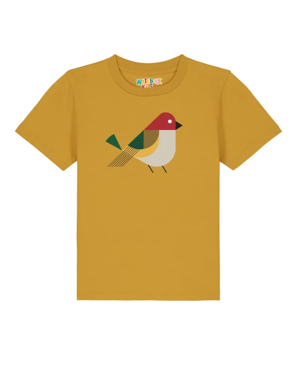 watabout.kids Shirt ‘Vogel’ oker / olijfgroen / grasgroen / wit