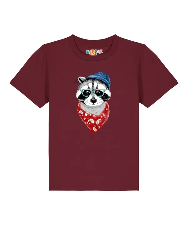 watabout.kids Shirt ‘Waschbär’ grijs / bordeaux / zwart / wit