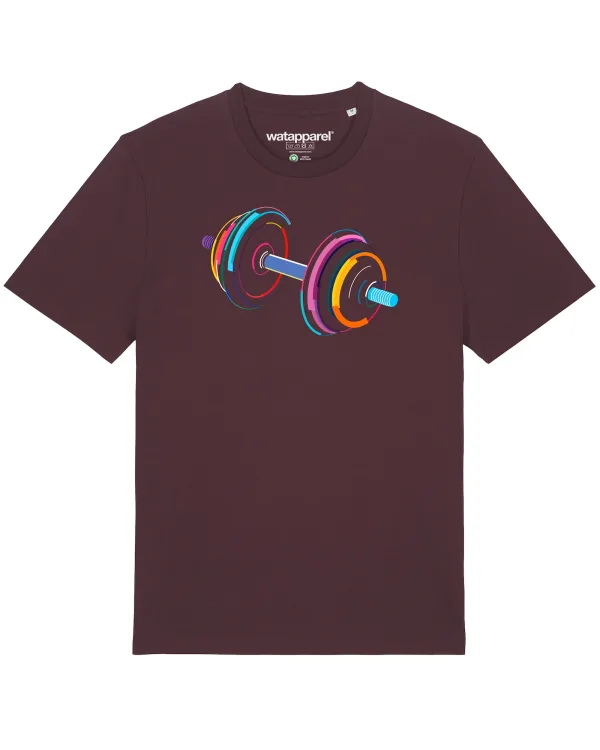 Specificaties: Watapparel Shirt ‘ 80s Hantel ‘ gemengde kleuren / donkerrood