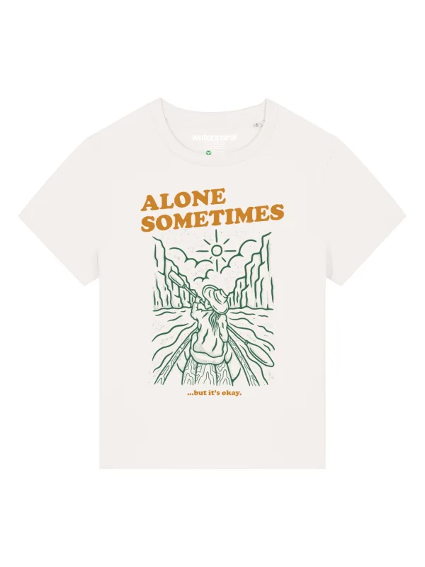 Specificaties: Watapparel Shirt ‘Alone sometimes but its okay’ donkergroen / mandarijn / wit