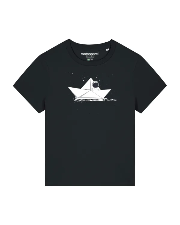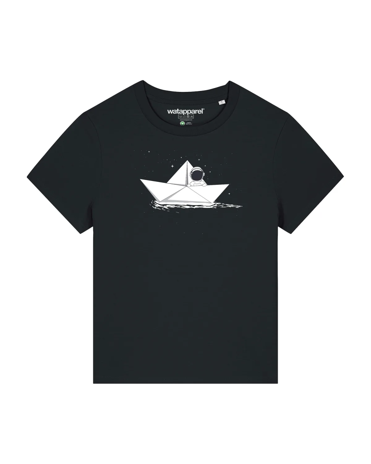Watapparel Shirt ‘Astronaut in paper boat’ zwart / wit