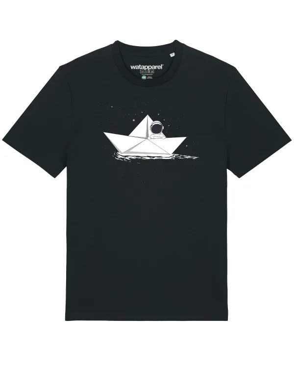 Watapparel Shirt ‘Astronaut in paper boat’ zwart / wit