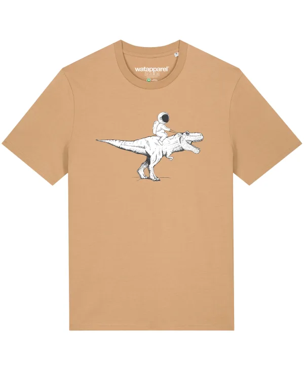 Watapparel Shirt ‘ Astronaut on T-Rex ‘ beige / zwart / wit