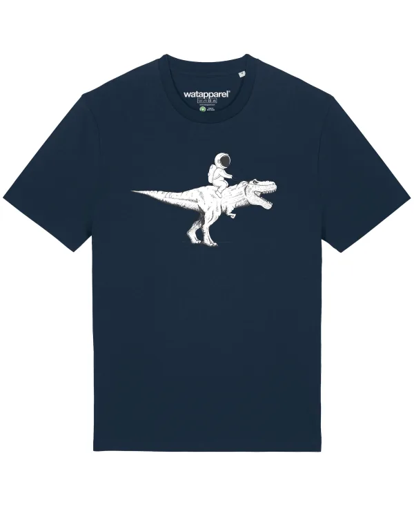 Watapparel Shirt ‘ Astronaut on T-Rex ‘ donkerblauw / zwart / wit
