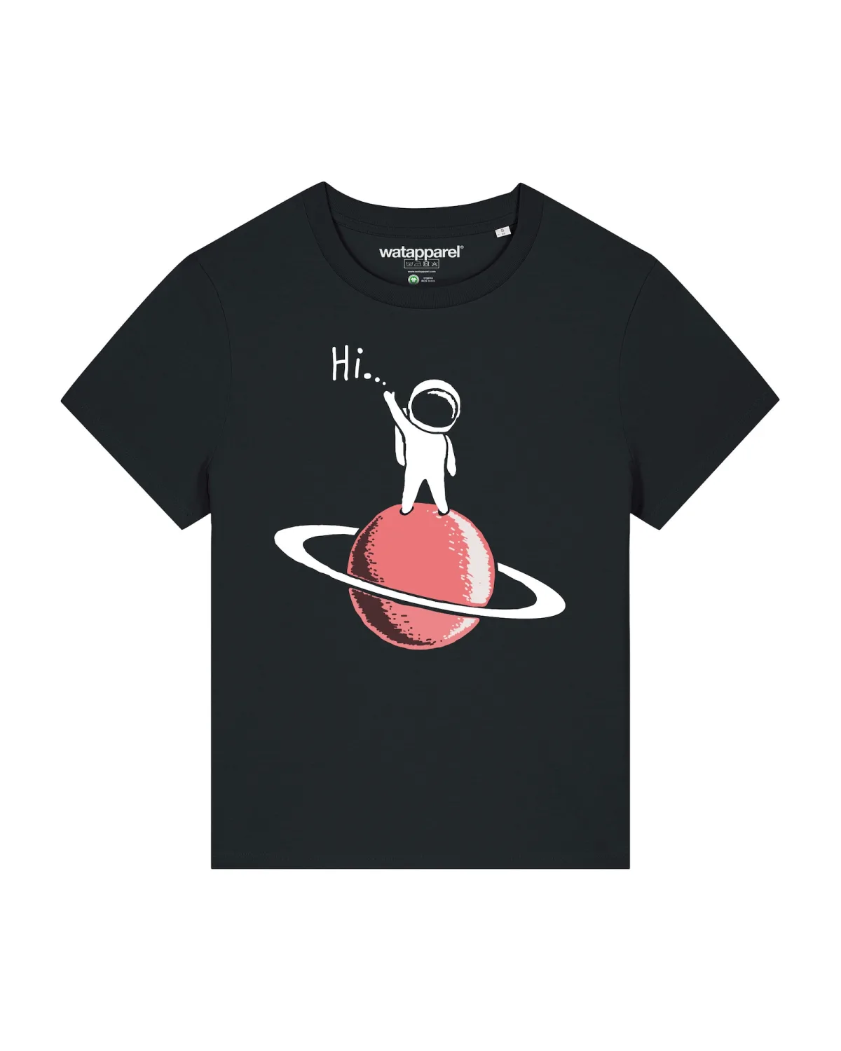 Specificaties: Watapparel Shirt ‘Astronaut says Hi’ rood / zwart / wit