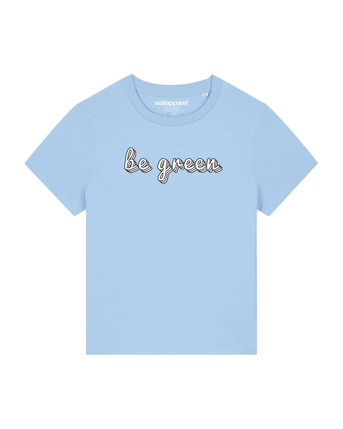 Specificaties: Watapparel Shirt ‘Be green’ lichtblauw / zwart / wit