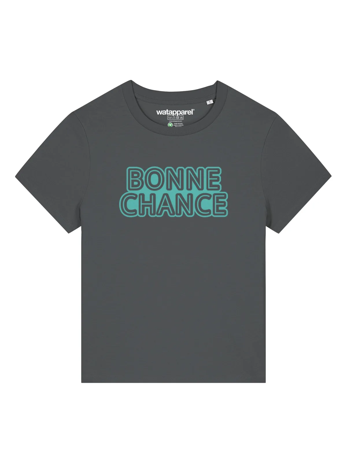 Specificaties: Watapparel Shirt ‘Bonne Chance’ turquoise / antraciet