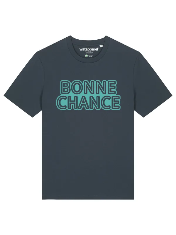 Specificaties: Watapparel Shirt ‘Bonne Chance’ turquoise / antraciet