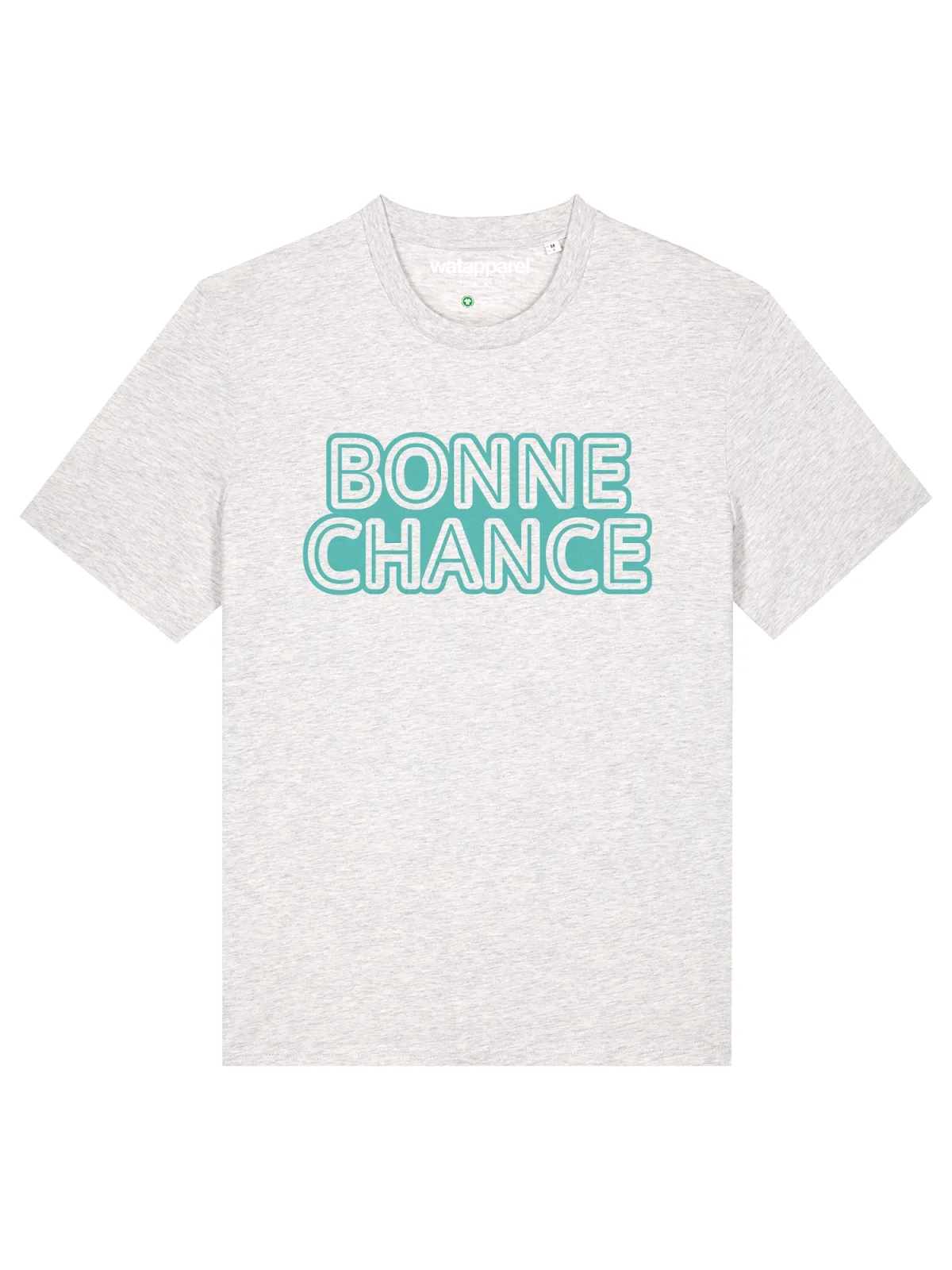 Specificaties: Watapparel Shirt ‘Bonne Chance’ turquoise / grijs gemêleerd