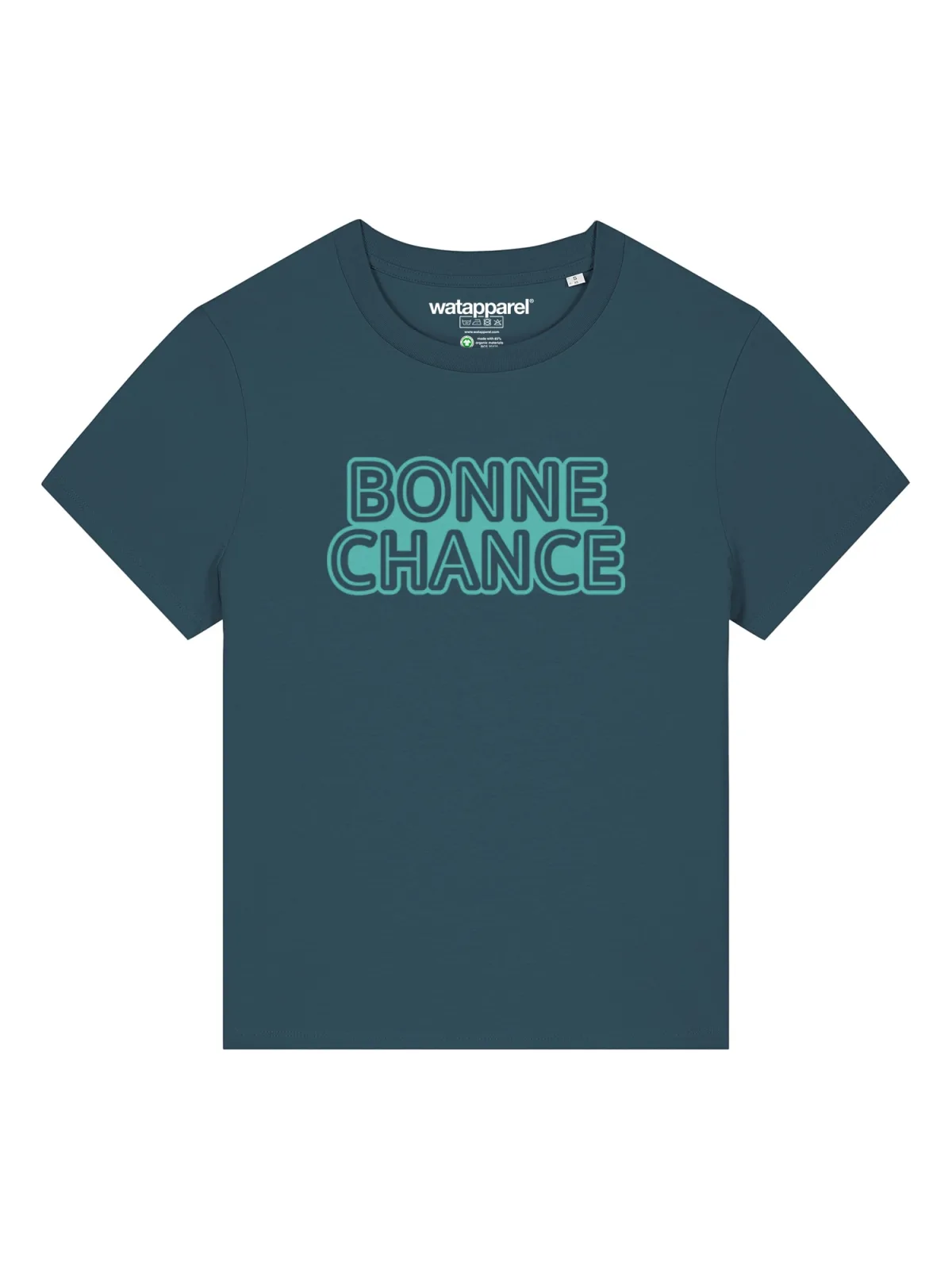 Specificaties: Watapparel Shirt ‘Bonne Chance’ turquoise / petrol