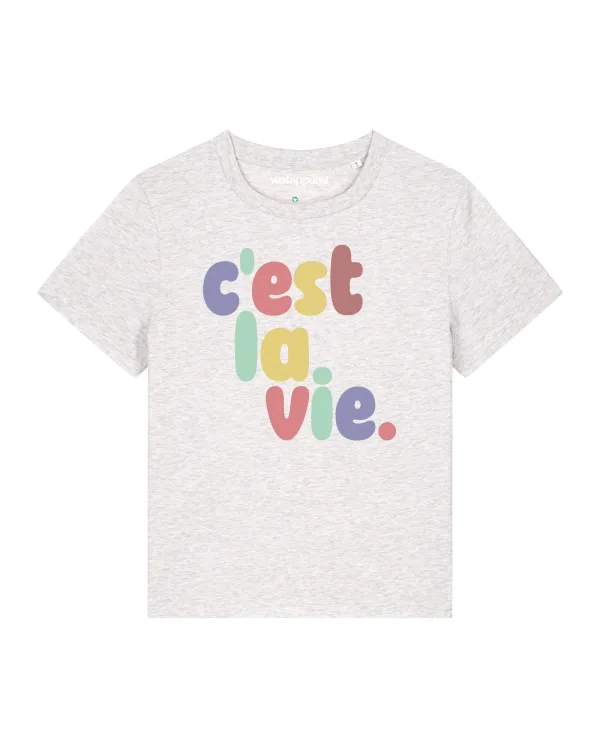 Specificaties: Watapparel Shirt ‘c’est la vie’ lichtgrijs / gemengde kleuren