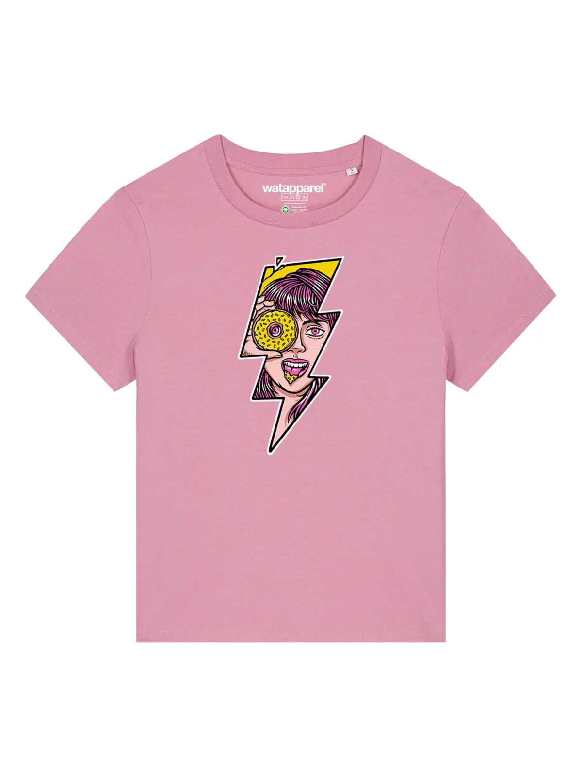 Watapparel Shirt ‘Donut’ geel / pitaja roze / wit