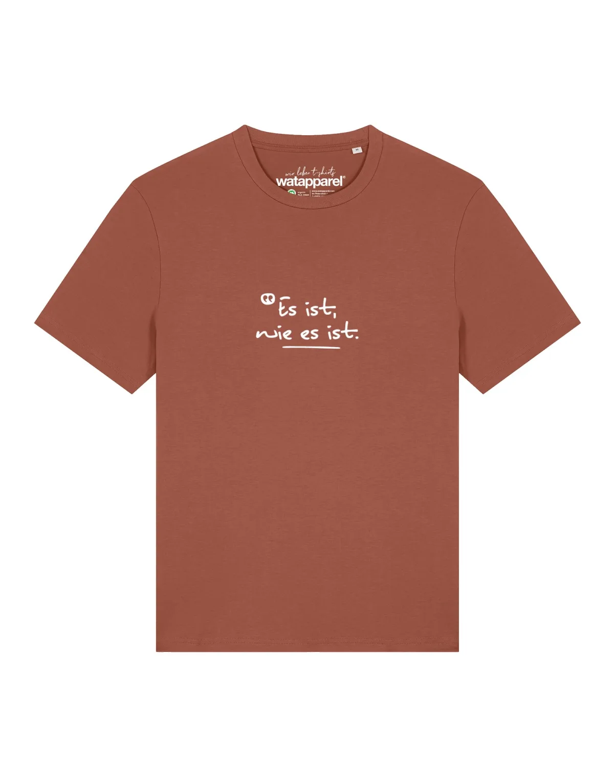 Specificaties: Watapparel Shirt ‘Es Ist Wie Es Ist’ roestbruin / wit