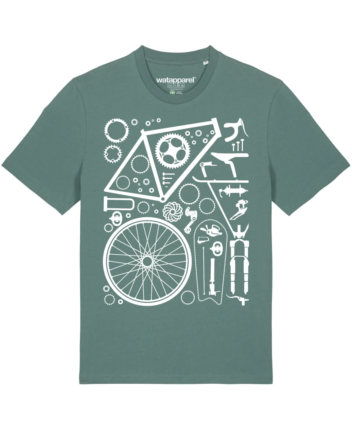 Watapparel Shirt ‘ Fahrradteile ‘ groen / wit