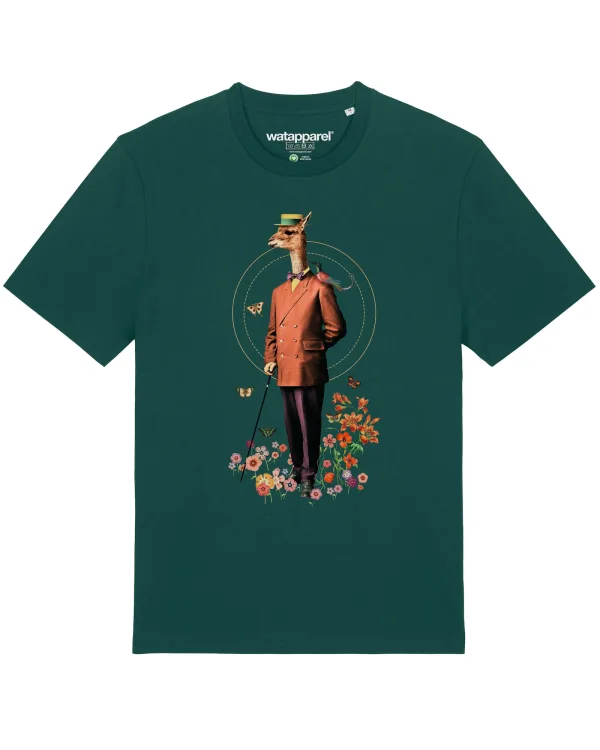 Specificaties: Watapparel Shirt ‘ Fancy Llama ‘ donkergroen / gemengde kleuren