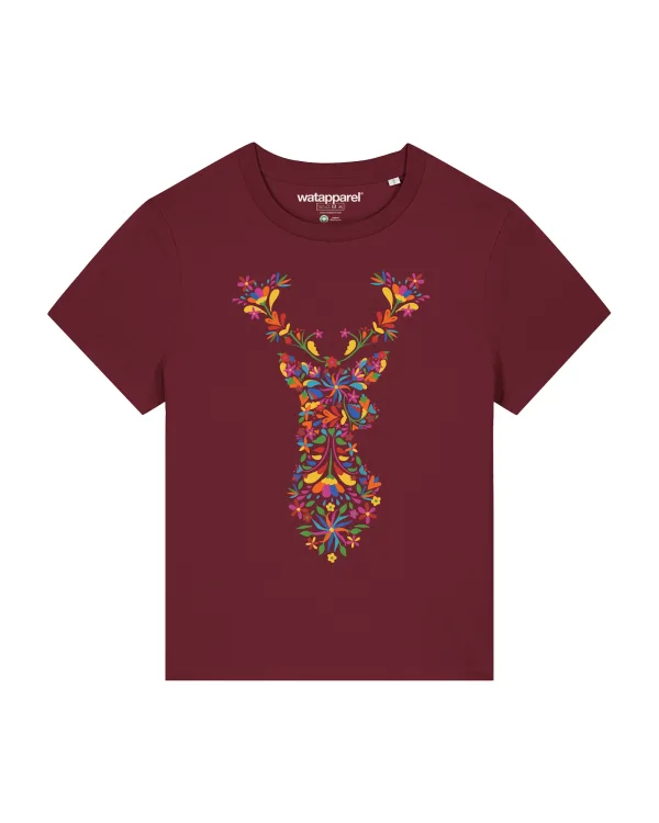 Specificaties: Watapparel Shirt ‘ Floral Deer ‘ gemengde kleuren / bordeaux