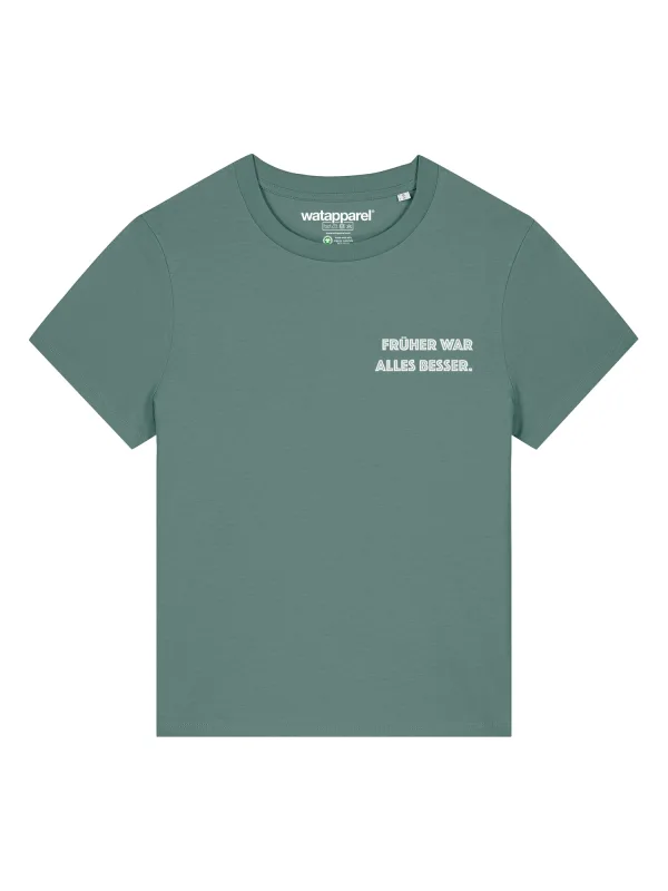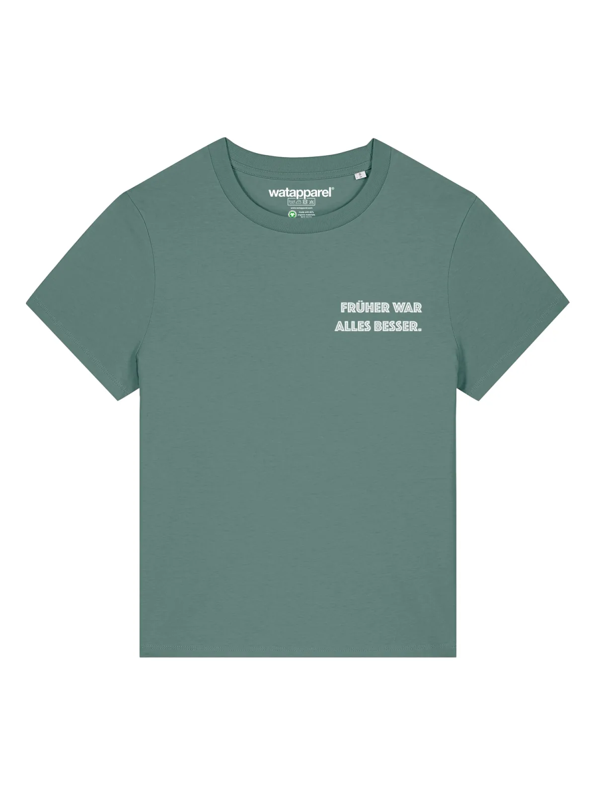 Specificaties: Watapparel Shirt ‘Früher War Alles Besser’ jade groen / wit