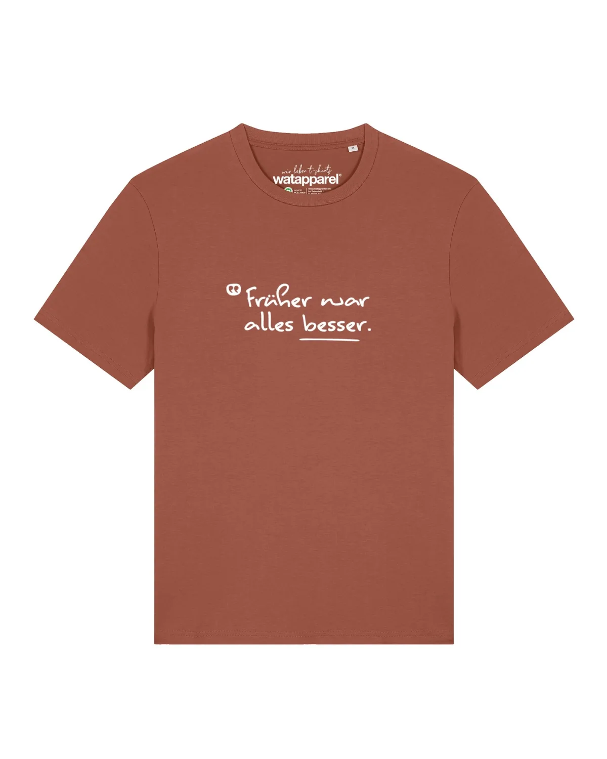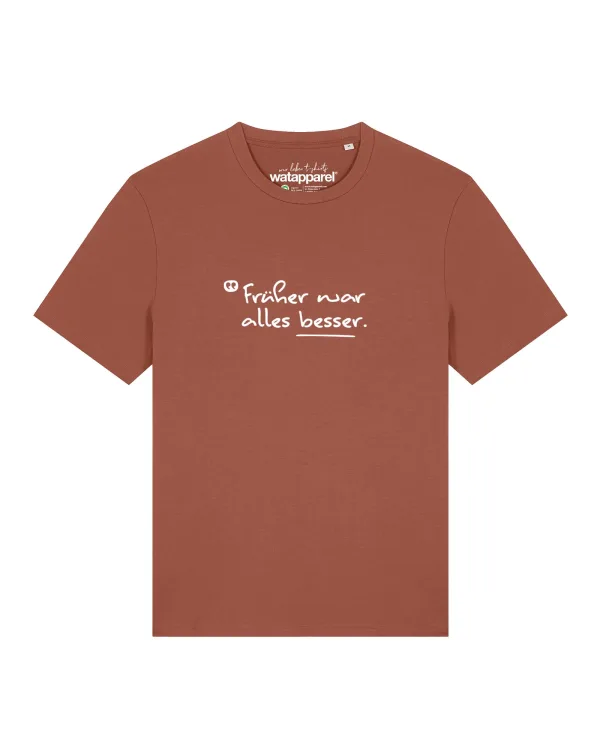 Specificaties: Watapparel Shirt ‘Früher War Alles Besser’ roestbruin / wit