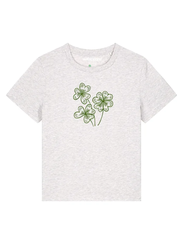 Specificaties: Watapparel Shirt ‘Glücksklee’ groen / wit gemêleerd