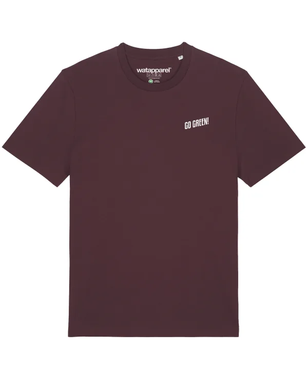 Specificaties: Watapparel Shirt ‘Go Green’ donkerrood / wit