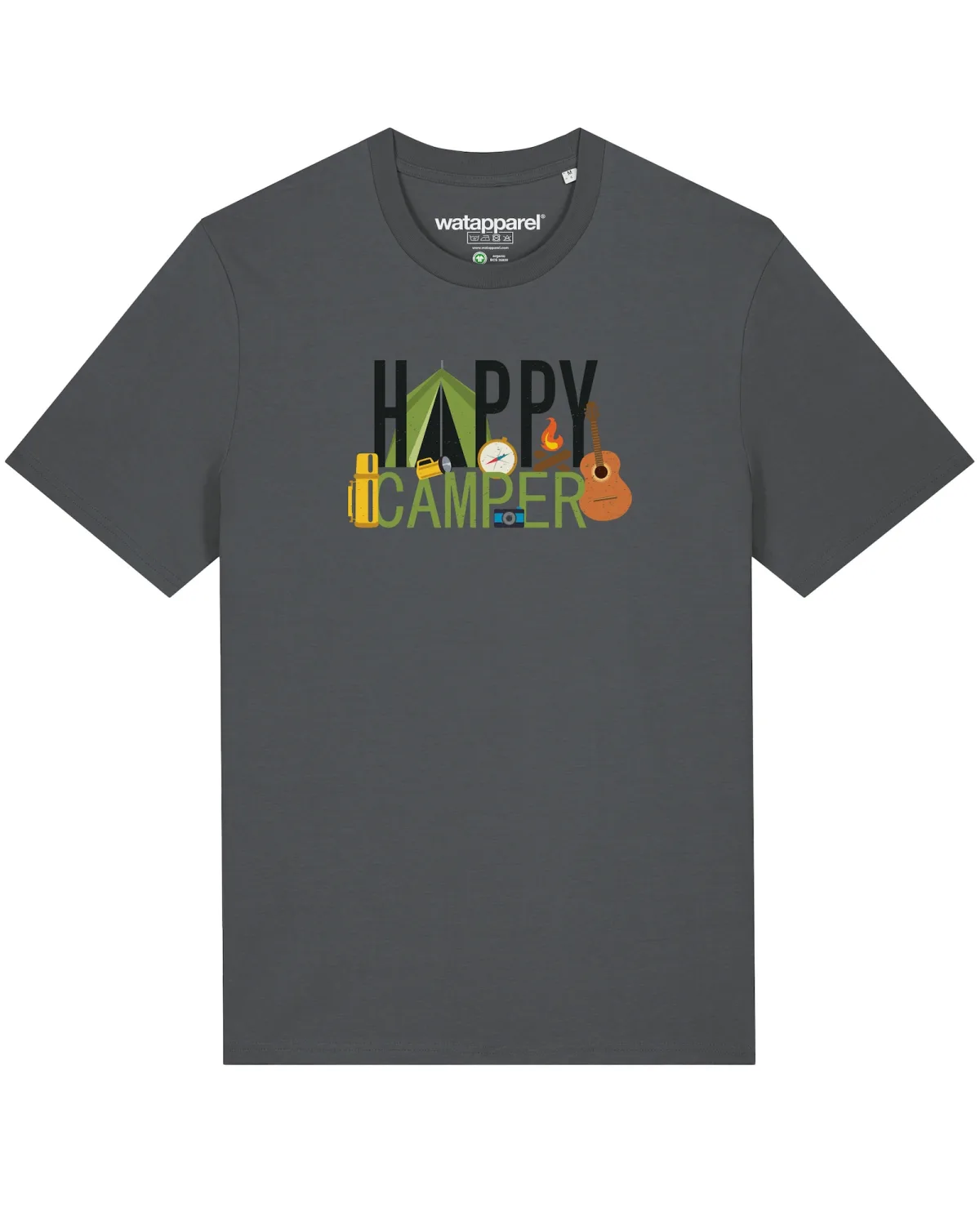 Specificaties: Watapparel Shirt ‘Happy Camper’ antraciet / gemengde kleuren