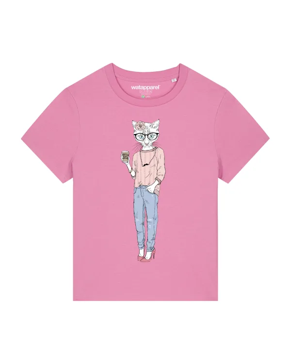 Watapparel Shirt ‘ Hipster Cat with Moustache ‘ gemengde kleuren / rosa