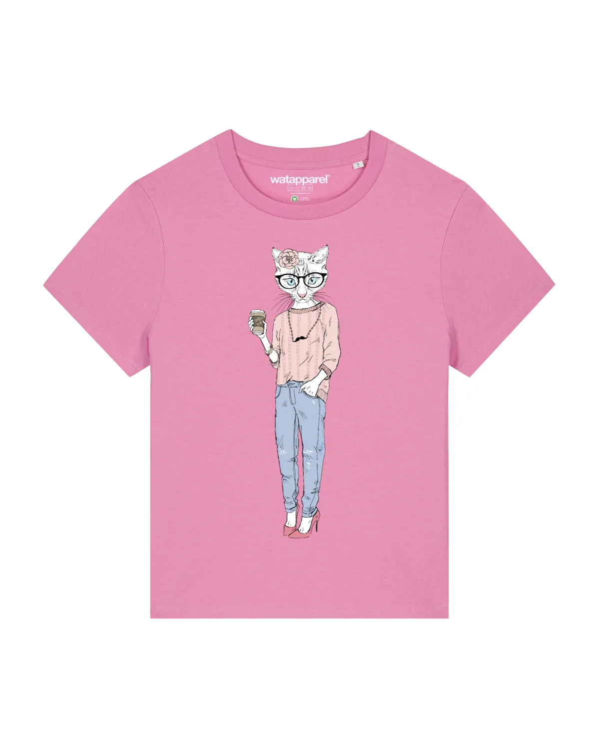 Specificaties: Watapparel Shirt ‘ Hipster Cat with Moustache ‘ gemengde kleuren / rosa