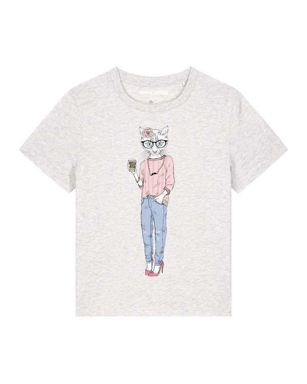 Specificaties: Watapparel Shirt ‘ Hipster Cat with Moustache ‘ gemengde kleuren / wit gemêleerd