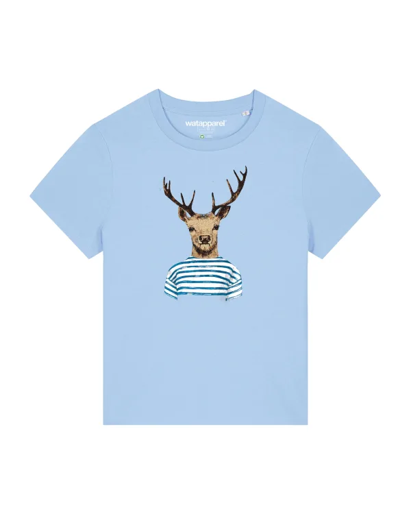 Specificaties: Watapparel Shirt ‘Hirsch’ lichtblauw / lichtbruin / zwart / wit