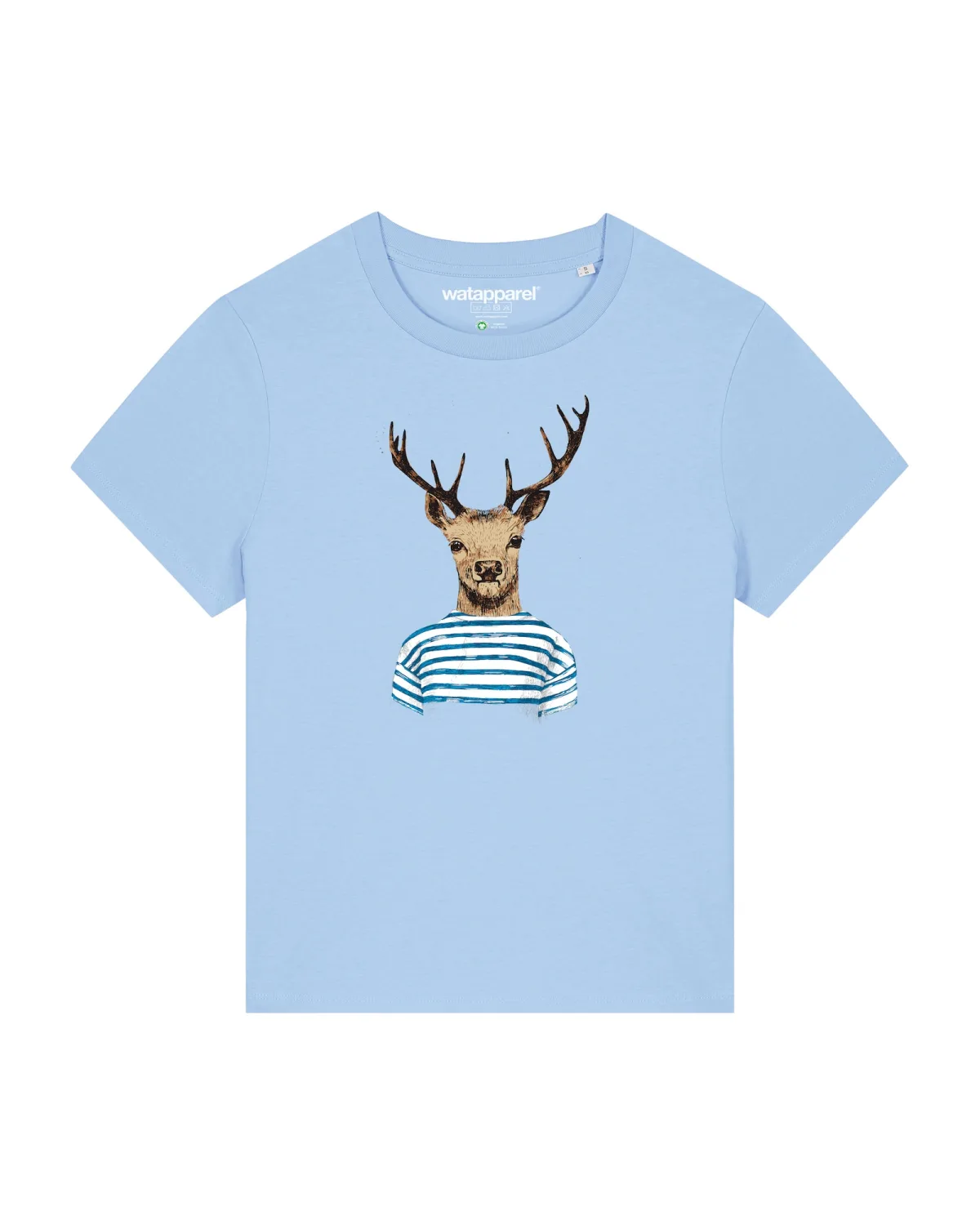 Watapparel Shirt ‘Hirsch’ lichtblauw / lichtbruin / zwart / wit