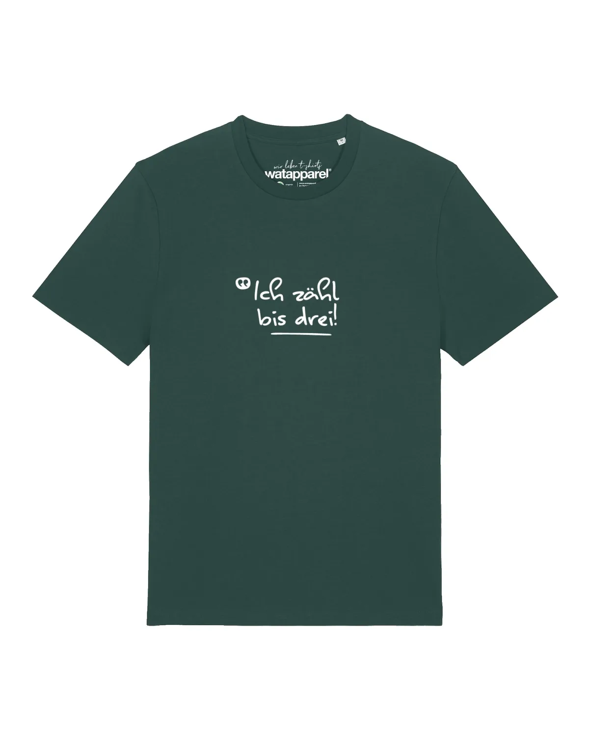 Specificaties: Watapparel Shirt ‘Ich Zähl Bis Drei’ donkergroen / wit