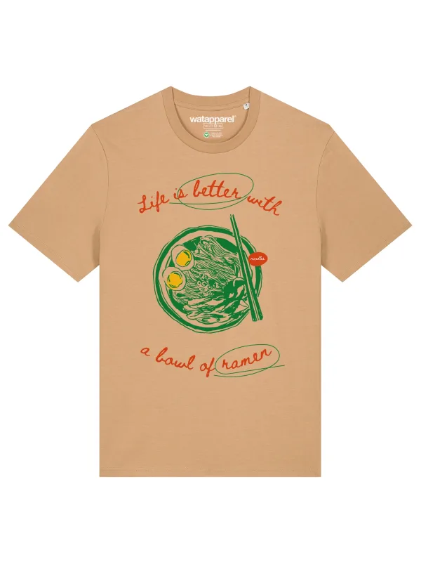 Watapparel Shirt ‘Life Is Better With Ramen’ camel / geel / groen / rood