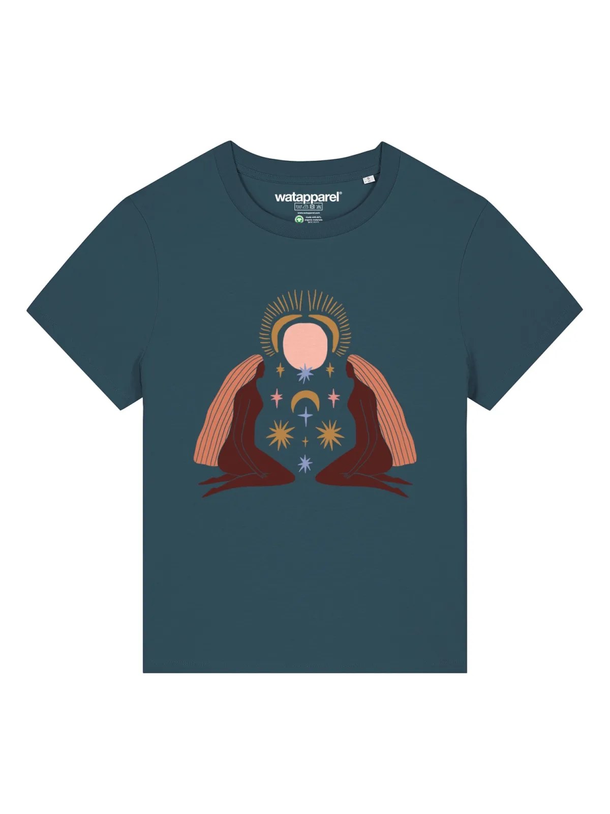 Watapparel Shirt ‘Love And Flex’ goud / petrol / rosa / wijnrood